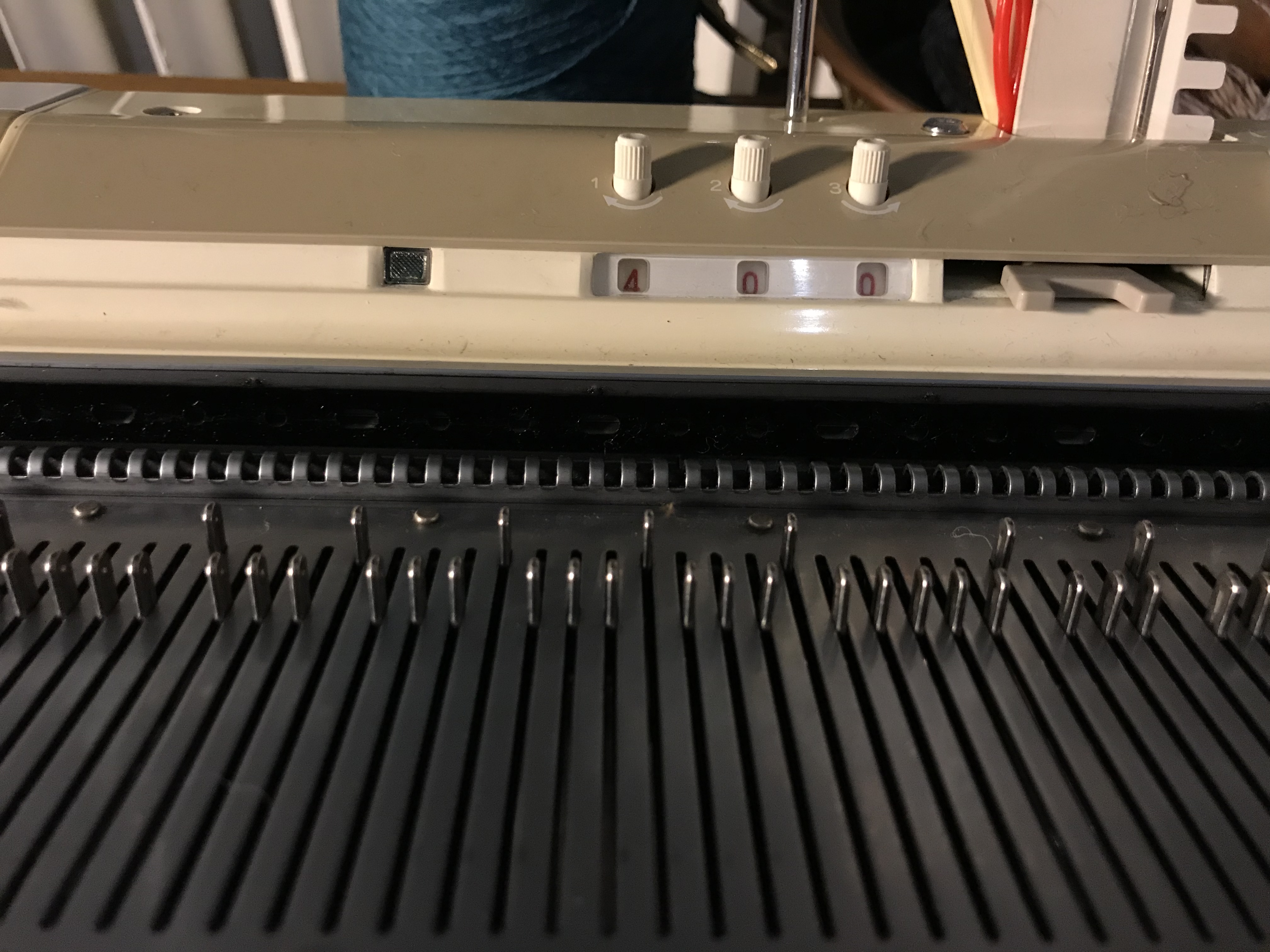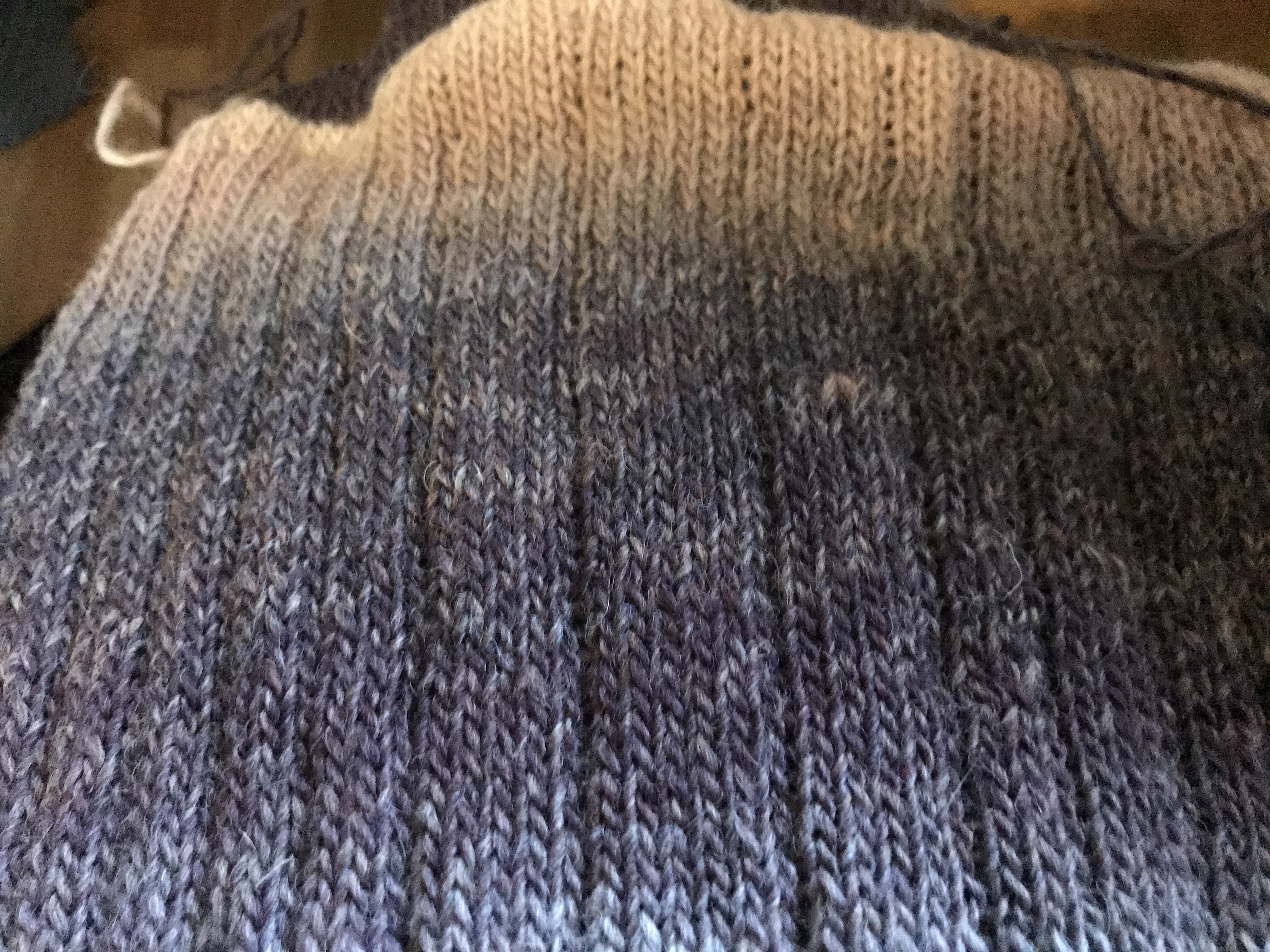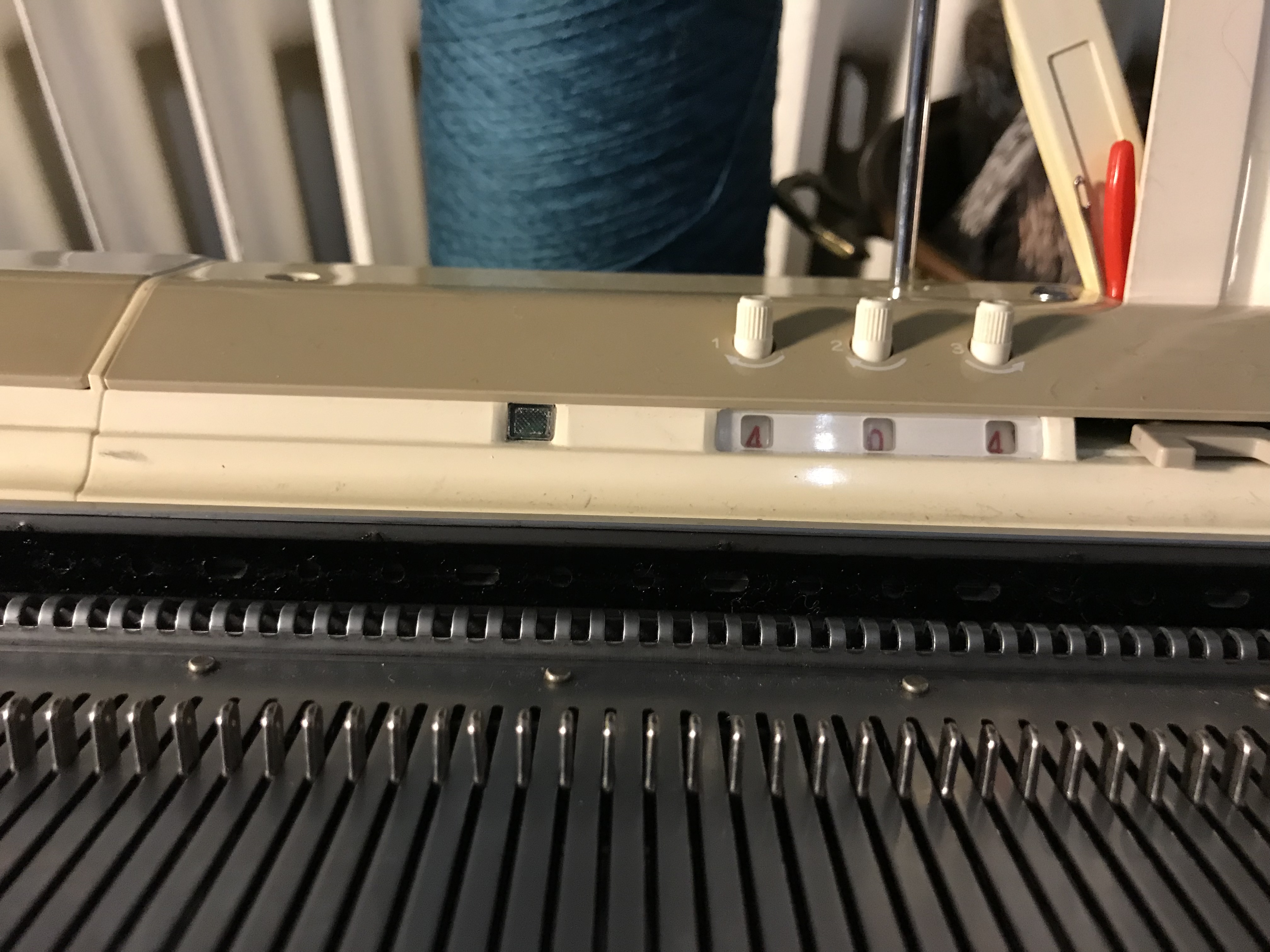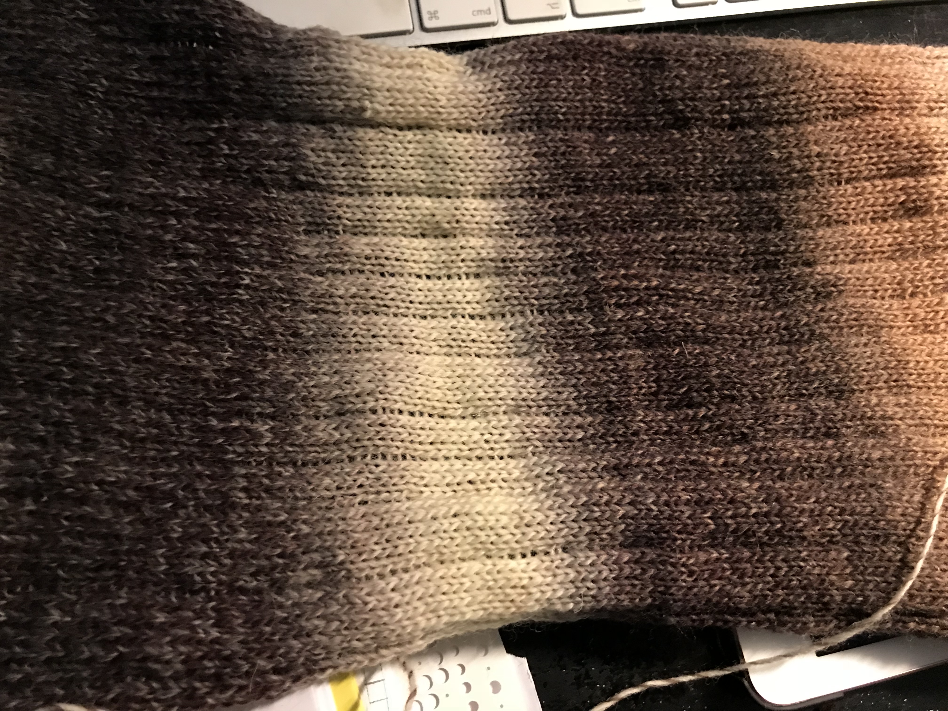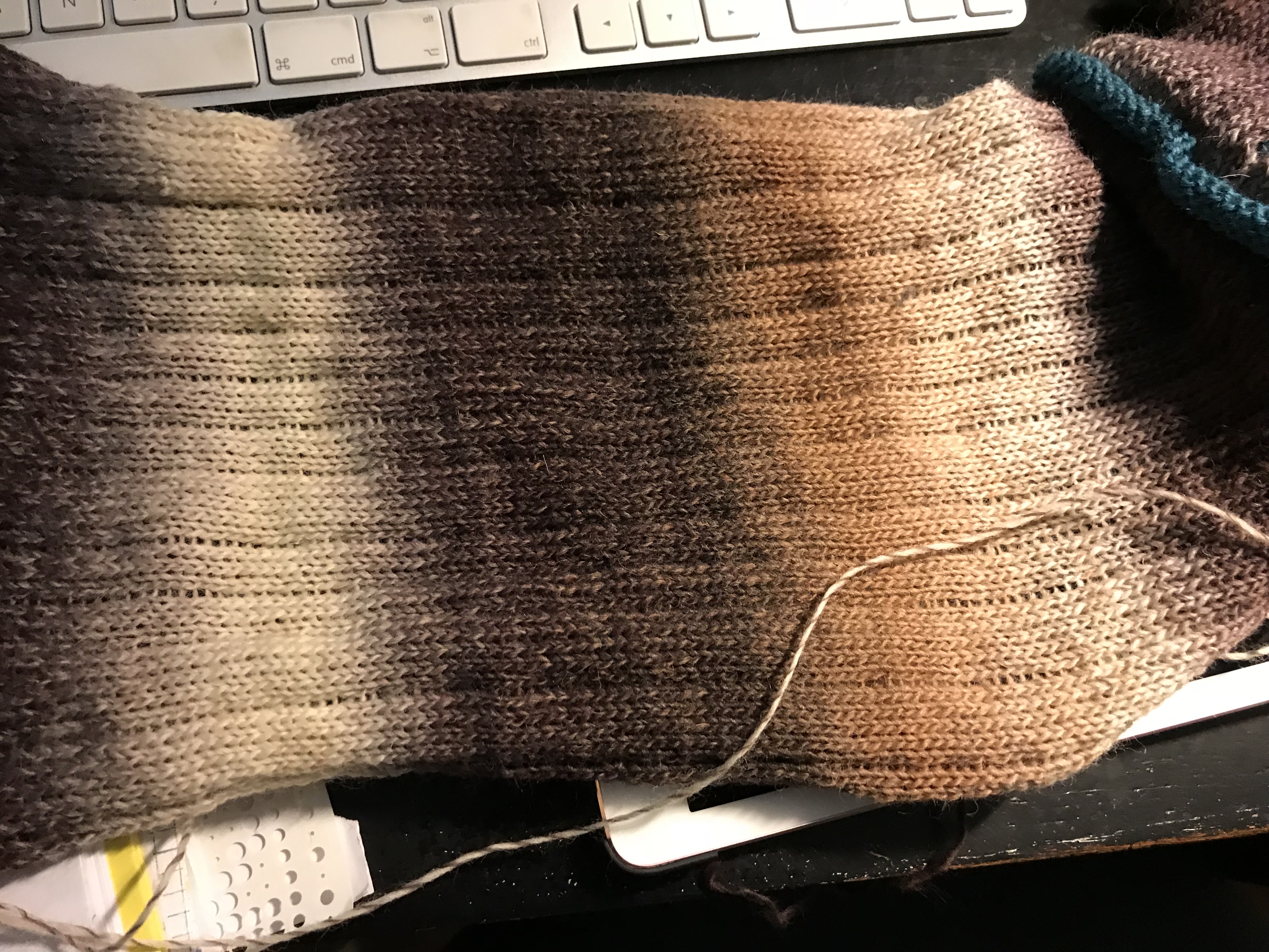 Last weekend we had our share of winter, it was a snowstorm out there and when the weather behaves like that there is nothing better than to stay indoors and knit. I have always been fond of colorful items and try to use colors in accessories as I, like so many other dress to much in black. I wanted to make something where the wonderful play of colors of the Kunstgarn from Hjertegarn would emerge and these simple yet colourful cowls were just the thing to make. It is made on my Brother 950. I have made several of them in some of the different colors of this soft yarn.