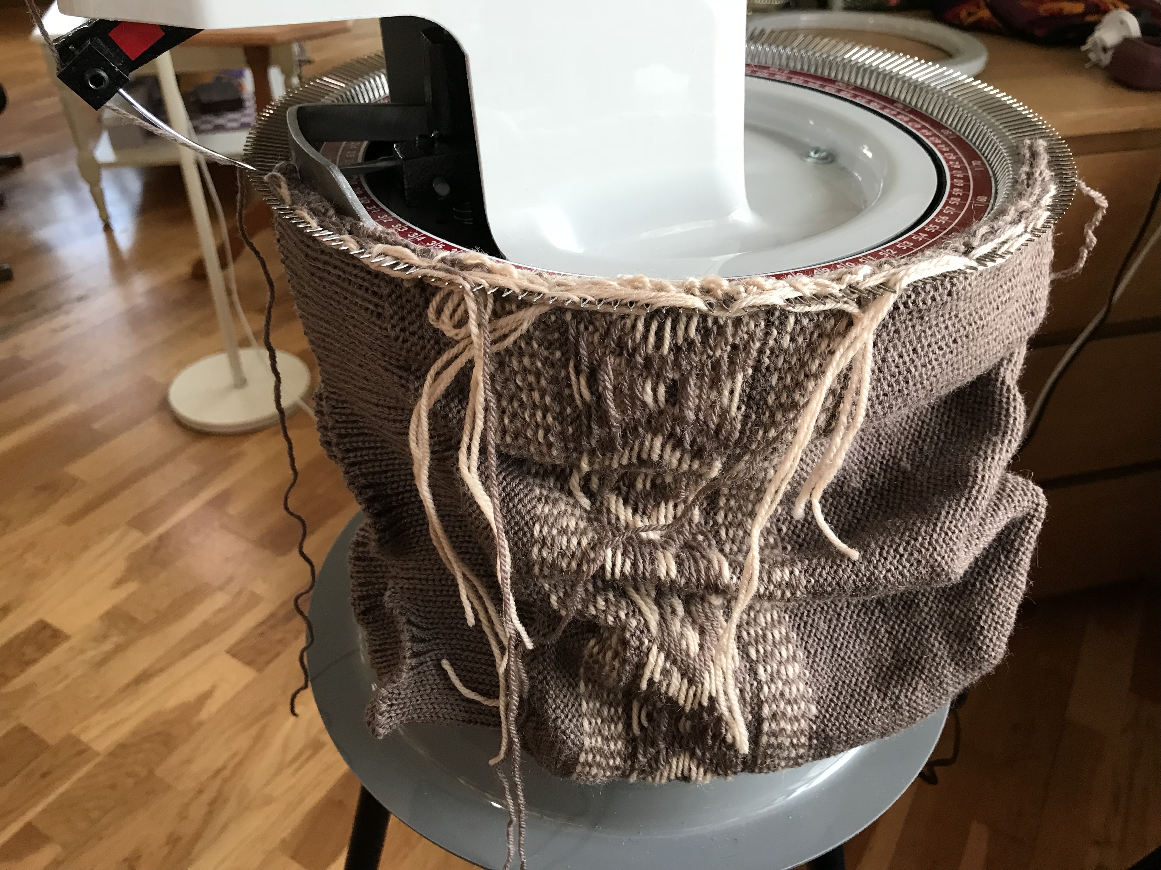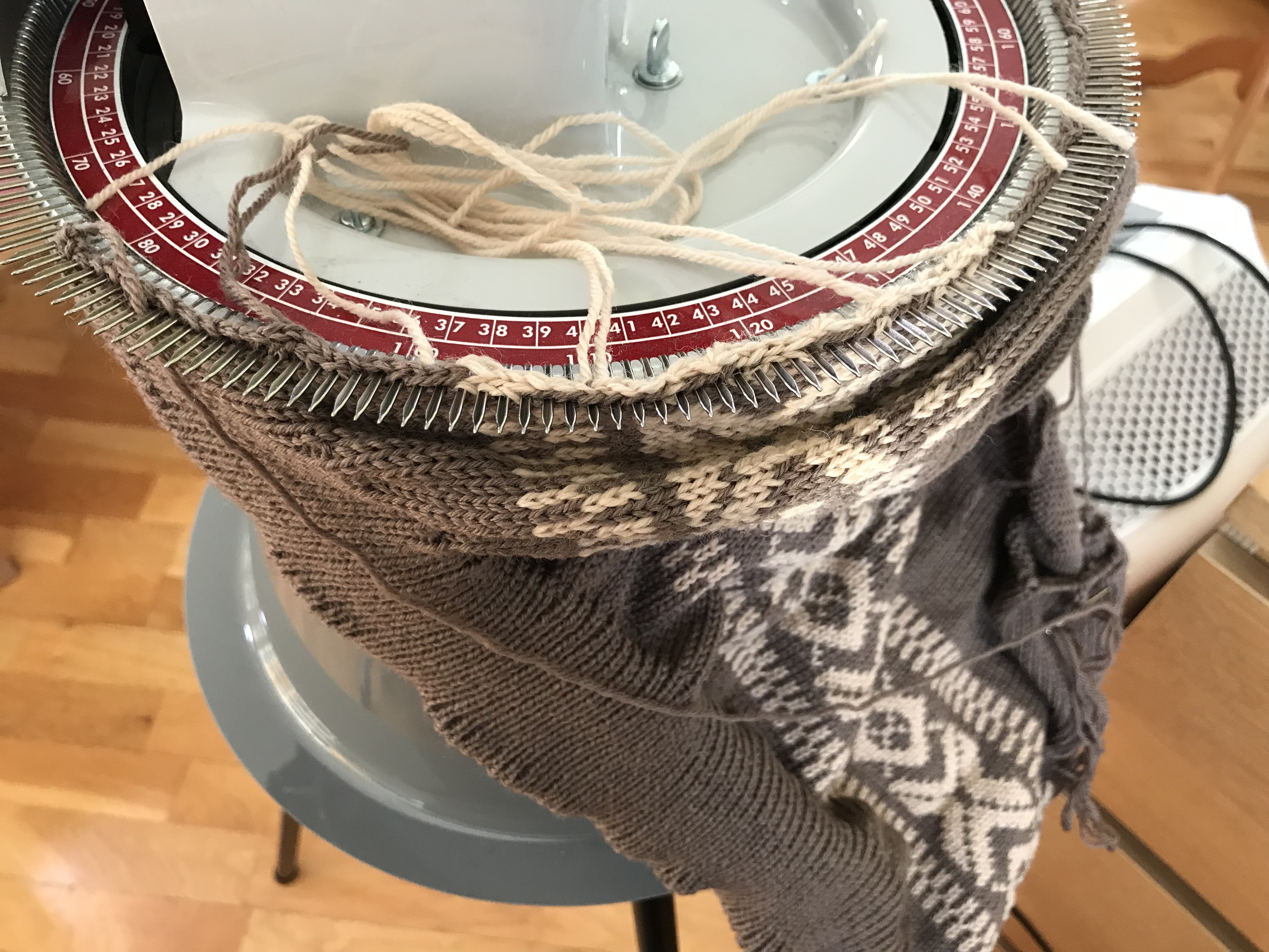 This hat is knitted on my Brother KH950 knitting machine with some nice soft suerwash merino yarn.